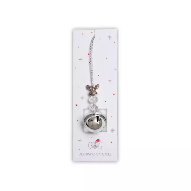 Este encantador adornito combina un cascabel plateado con un hermoso dije de ángel, creando una pieza super elegante que aportará un brillo especial a tu árbol o cualquier rincón festivo. Su diseño delicado y simbólico evoca el espíritu de la Navidad, haciéndolo perfecto para complementar tu decoración con un mensaje de paz y amor.